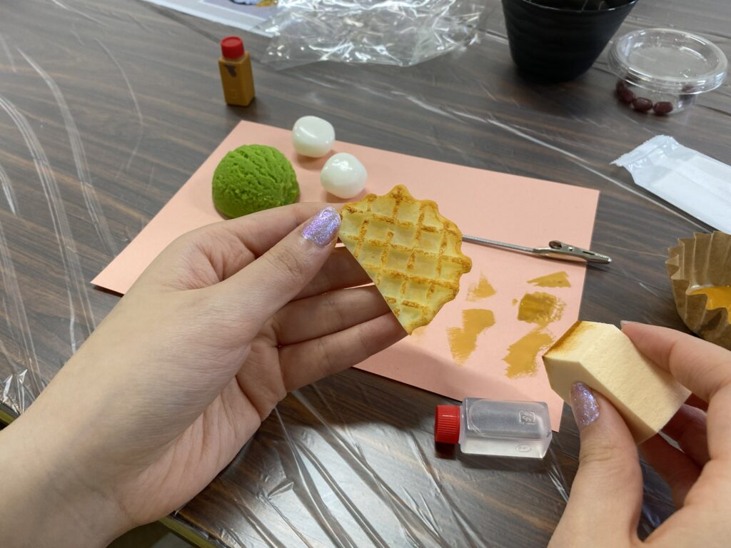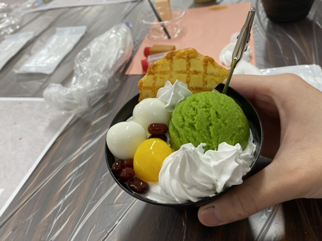 3月11日(水)、週1・2日クラスは校外学習を実施しました。今回は難波・道具屋筋にあるデザインポケットさんを訪れ、抹茶パフェの食品サンプル作りを体験しました。